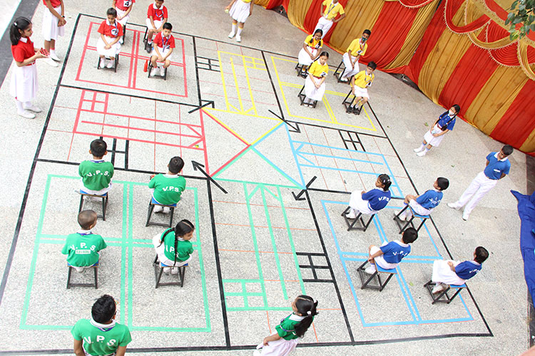 The VPS has widespread acres of open ground, fully equipped to ground numerous outdoor sports and games. We emphasize regular exercises and physical fitness through our rigorous physical training program and keep our students active and healthy. Physical fitness is also a parameter of evaluation and hence along with athletics and sports, a Mass PT is conducted where children are trained to develop coordination, endurance, speed, agility, strength, and fine motor skills. Interpersonal skills and team spirit is the natural fallout of adapting to a group. Every year, the school holds an Annual Athletic Meet,for School students where the students display their athletic prowess and compete with a healthy sportsmanship spirit. Weekly classes in yoga and Martial Art teach students self-defense, discipline, achieve fitness, control, and harmony. Meditation and Pranayama are taught to children to improve concentration. Children involved in the sports programme experience some of the most challenging and rewarding moments of their lives. The Physical Education Department consists of a team of dedicated teachers who specialists in their filed and are responsible for the implementation of the day-to-day sports programme. Intra and inter- house competitions help spot and nurture talent.